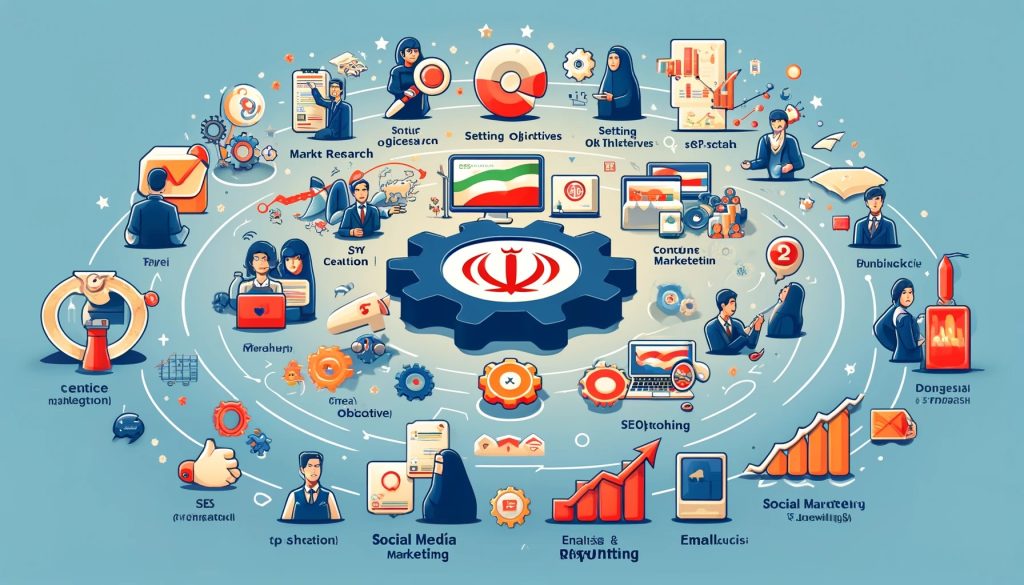 1. تعریف اهداف کسبوکار – قبل از هر چیز، باید اهداف کسبوکار خود را در فضای مجازی مشخص کنید. این اهداف میتواند شامل افزایش آگاهی برند، تولید سرنخ، فروش محصولات/خدمات یا افزایش تعامل با مشتریان باشد.