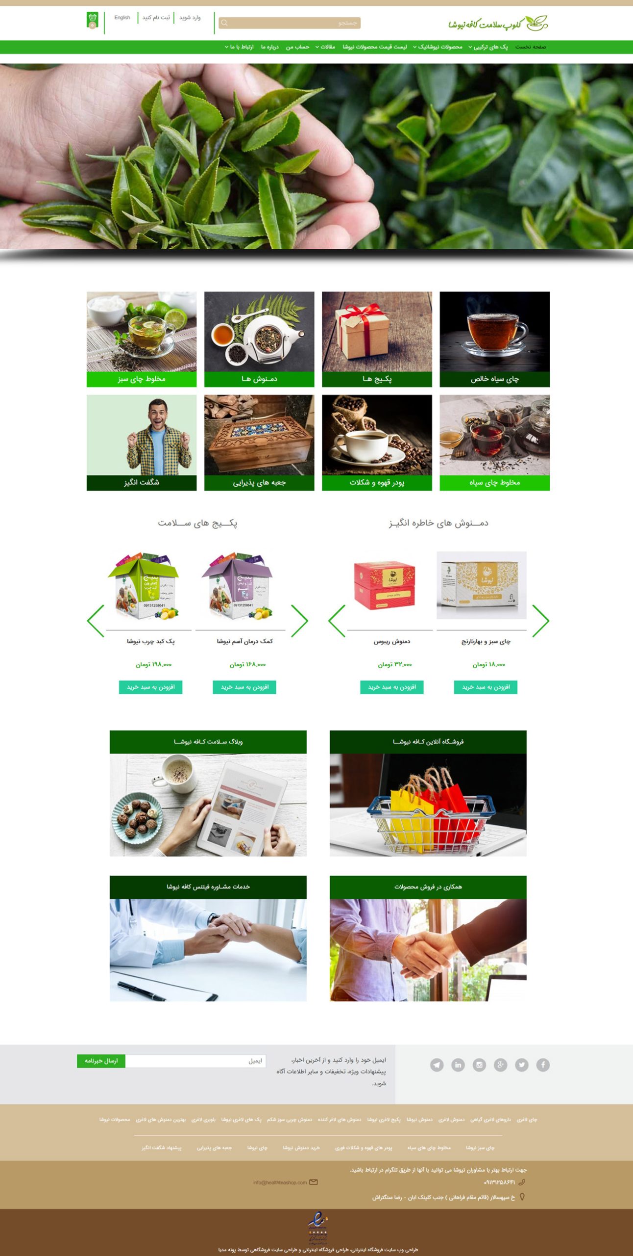 فروشگاه اینترنتی نیوشانیک ارائه دهنده انواع دمنوش های سلامتی مثل چای های لاغری و دمنوش های چاق کننده و … است. کلوپ سلامت نیوشانیک عضوی از خانواده بزرگ فروشگاه نیوشا، است در بین فروشگاههای فروش دمنوش های سلامتی فروشگاه نیوشا یکی از بزرگترین فروشگاههای فروش دمنوش سلامتی است. پونه مدیا به خود می بالد که بتواند خدمتی در راستای طراحی مجموعه وب سایت های فروشگاه نیوشانیک انجام دهد.